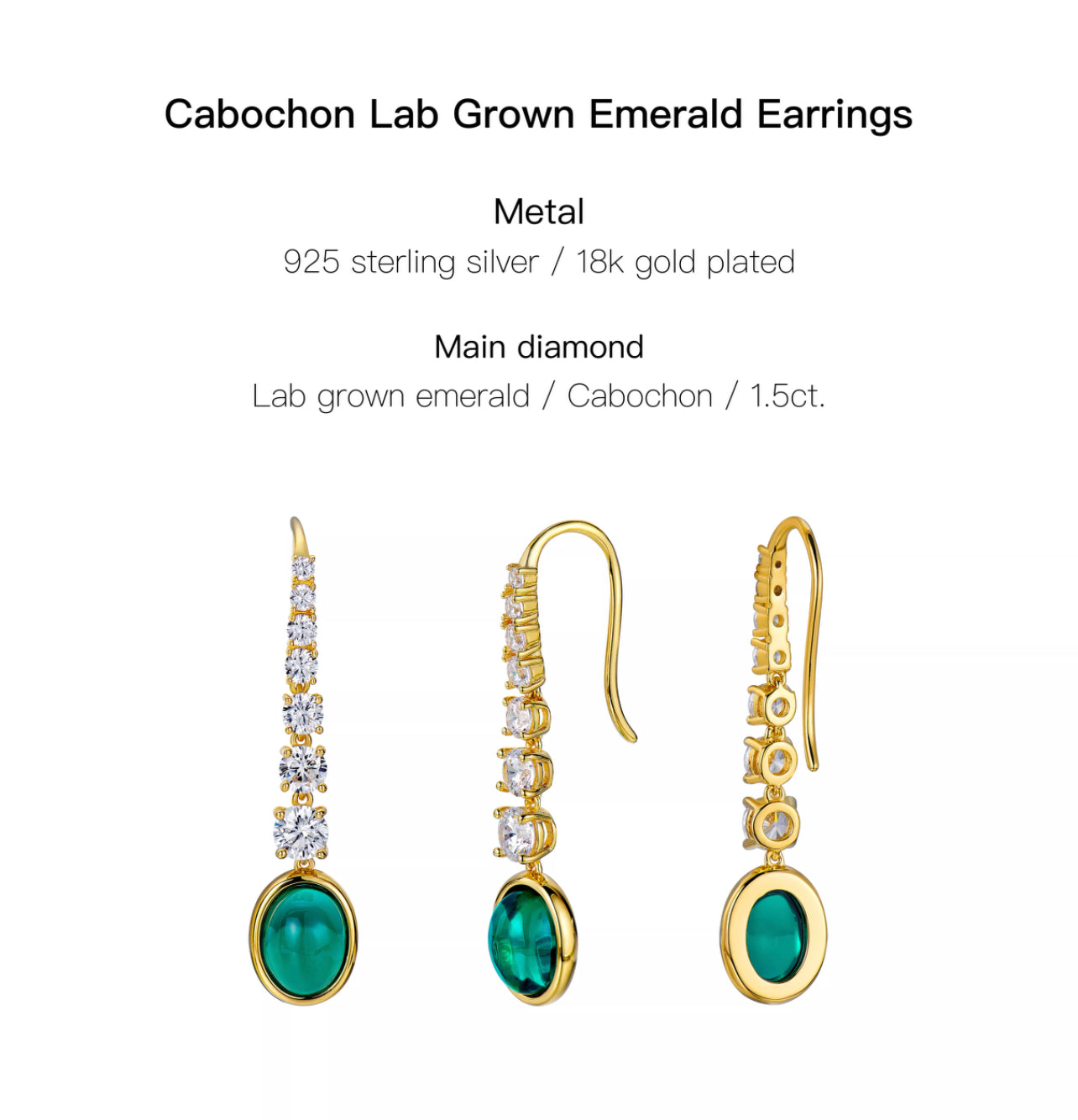 - Stone: Lab-grown Emerald; Moissanite