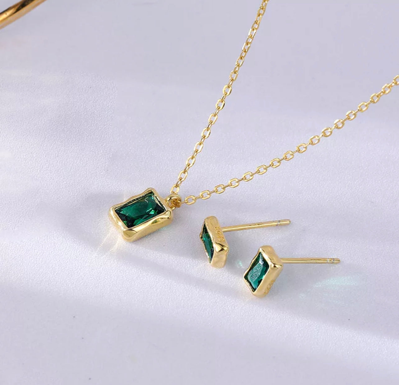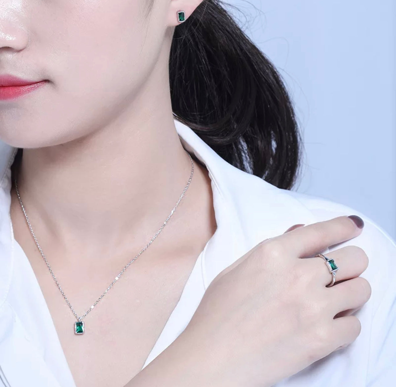 - Set Includes: Necklace: stone: 6 x 10 mm (L: 40+ 5 cm); ring stone size: 4 x 6 mm; dimension: adjustable); Stud earring (6.6x 4.5 mm)