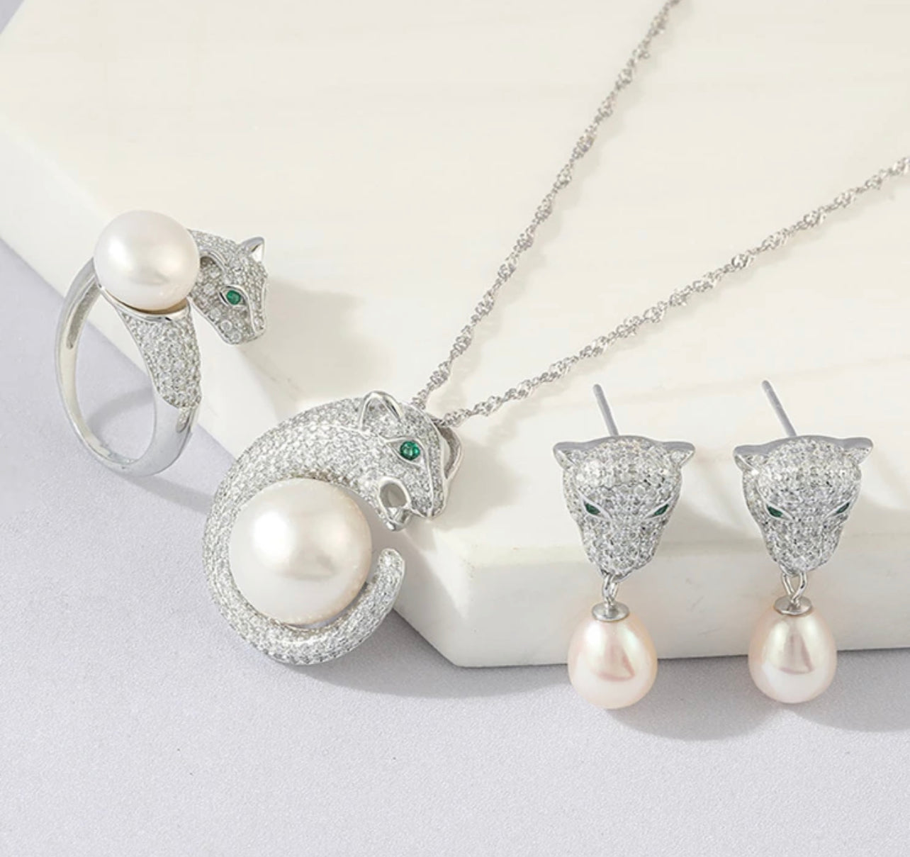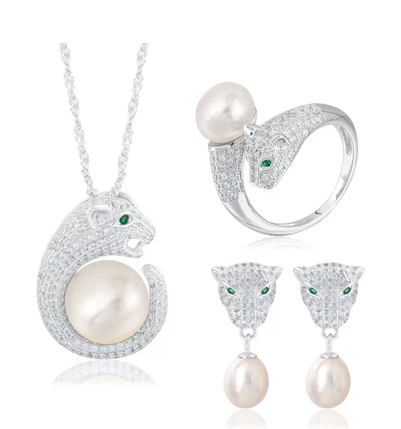 - Stone: 3A CZ; Emerald; Pearl